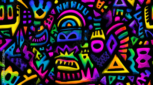 © Vika art, Obraz premium Psychedelic neon funky pattern.