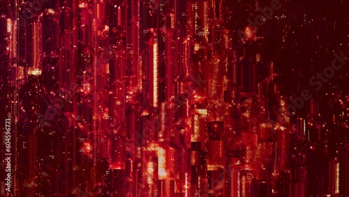 © remotevfx, Obraz premium Psychedelic orange HUD interface 3D Illustration with abstract digital code. Concept glitch background as cyberpunk computer meltdown overlay with fragments. Digital hex code crypto wallpaper.