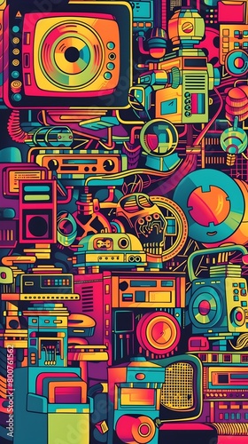 Obraz premium Psychedelic Pop Art Suspicious Spy Gadgets Exchanging Coded Messages