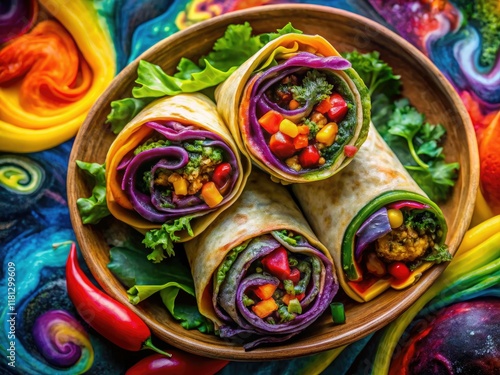 Fototapeta premium Psychedelic salad bursts with vibrant color in a surreal vegetarian burrito...
