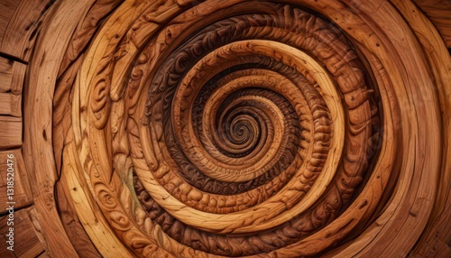 Fototapeta premium Psychedelic spiral patterns on wood background, spiral, organic