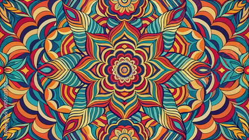 © imam, Fototapeta premium Psychedelic Vintage Geometric Abstract Pattern with Bold Colors
