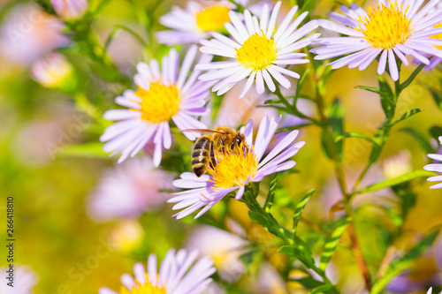 Obraz premium Pszczoła na kwiat w ogrodzie