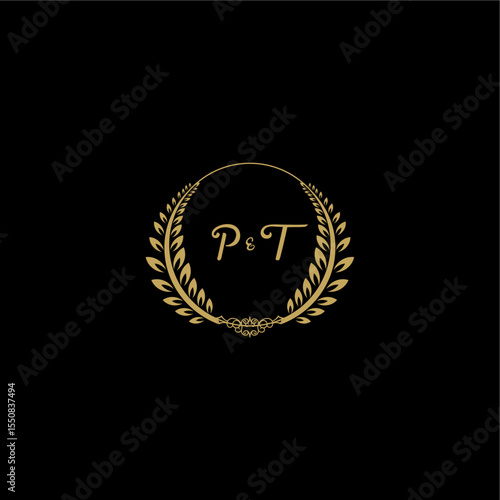 Fototapeta premium PT beautiful feminine and elegant wedding monogram initial logo with circle floral gold
