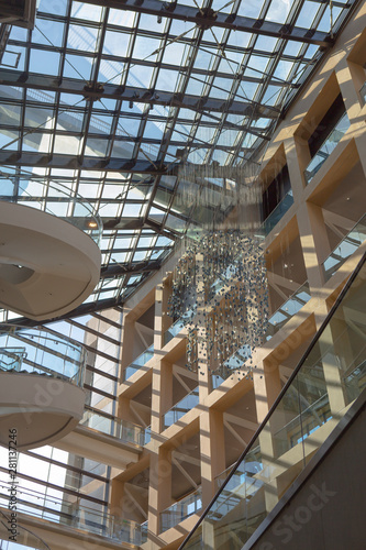 © Gracie, Obraz premium public library of salt lake city windbell glass reflection sunny day glass roof elevator