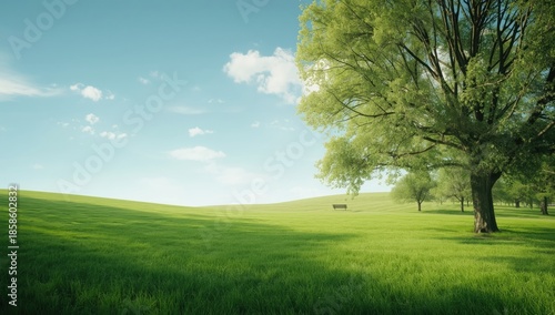 © Seyyar, Fototapeta premium Public park grass field serving as a backdrop for layout and text placement