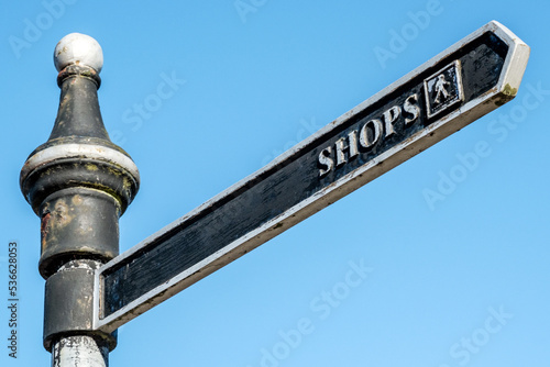 © Martin Lee, Fototapeta premium Public Street Sign Pointing Way To Shops With No People