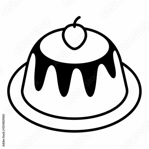 © Shahanaz, Obraz premium Pudding with cherry on plate isolated on white background