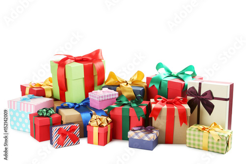 Obraz premium Pudełka na prezent ze wstążką na białym