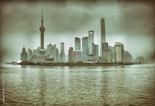 © trialartinf, Obraz premium Pudong financial district in polluted air. Shanghai, China