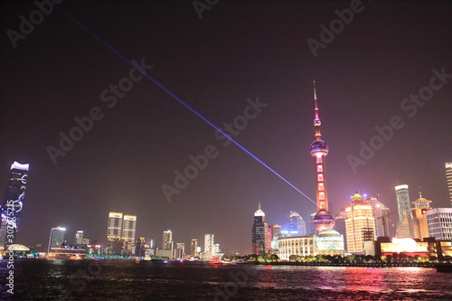Obraz premium Pudong night view from the Bund in Shanghai, China
