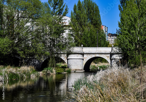 © Gabrieuskal, Fototapeta premium Puente cruzando un río en primavera.