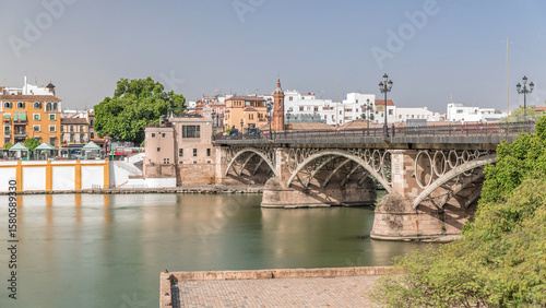 Fototapeta premium Puente de Isabel II bridge timelapse hyperlapse over the Guadalquivir River,...