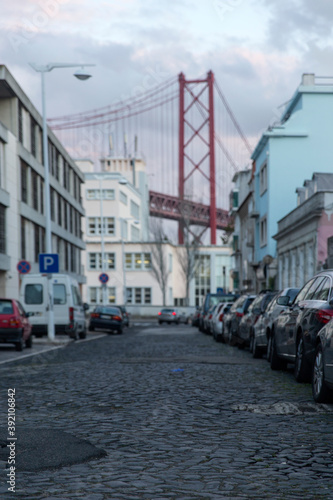 Fototapeta premium Puente del 25 de Abril o Ponte 25 de Abril en la ciudad de Lisboa, pais de...