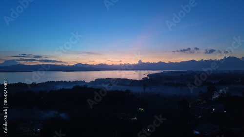 © A|B Footage, Obraz premium Puerto Princesa city silhouette with colorful twilight sky gradient Palawan