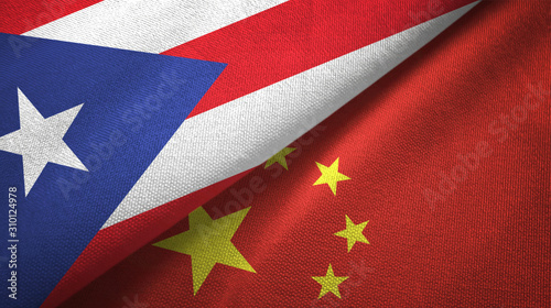 © Aleks Taurus, Fototapeta premium Puerto Rico and China two flags textile cloth, fabric texture