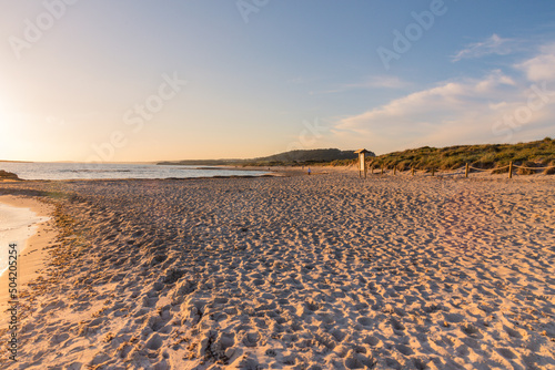 Fototapeta premium Puesta de sol en la playa de Son Bou, en Menorca (Islas Baleares, España)