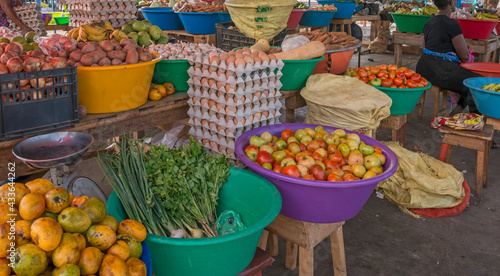 Fototapeta premium Puestos de productos agrícolas en la plaza de la Estrella en la ciudad de...