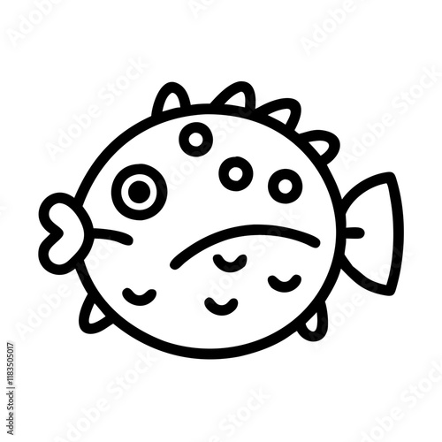 © Waliul, Obraz premium pufferfish icon, fish line art, fish vector - simple black line art icon of pufferfish perfect for logos, and fish-themed designs.