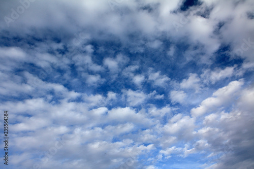 © vladislavmavrin, Naklejka premium Puffy clouds on a blue sky