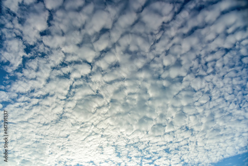 © nuwatphoto, Obraz premium Puffy fluffy white clouds against daytime sky.
