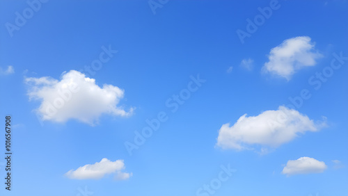 © Crowcat, Obraz premium Puffy white clouds floating in a bright blue sky, Generative AI