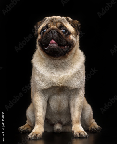 Obraz premium Pug dog on Isolated Black Background in studio