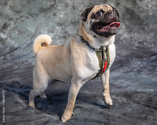 © John, Obraz premium Pug sits on floor with grey background
