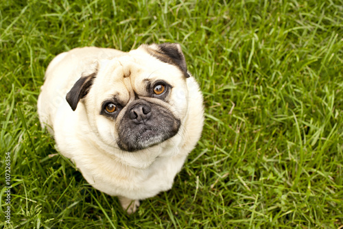 Obraz premium pug sittiing in long grass