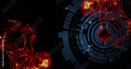Obraz premium Pulsing blue concentric HUD overlapping black space, showing red nebula...