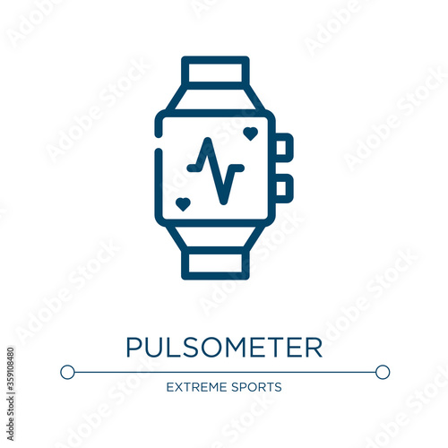 © VectorStockDesign, Obraz premium Pulsometer icon. Linear vector illustration from bicycle racing collection. Outline pulsometer icon vector. Thin line symbol for use on web and mobile apps, logo, print media.