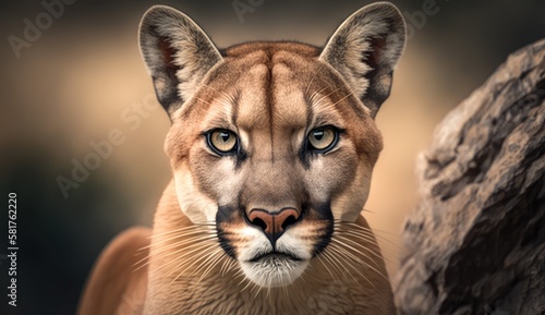 Obraz premium Puma. Portrait mit Blick in die Kamera. Generative AI image