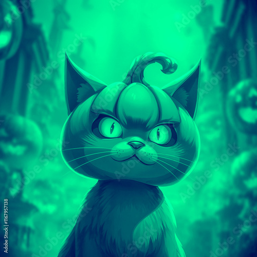 © Artist Evolve , Obraz premium Pumpkin Cat Looking Down At His Next Prey