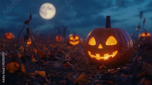 Fototapeta premium Pumpkin field under full moon