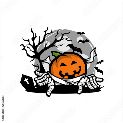 Fototapeta premium Pumpkin Halloween Moon Theme Logo Vector