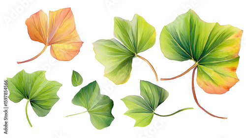 © No background, Obraz premium Pumpkin Leaf Set Watercolor PNG, Isolated for Design
