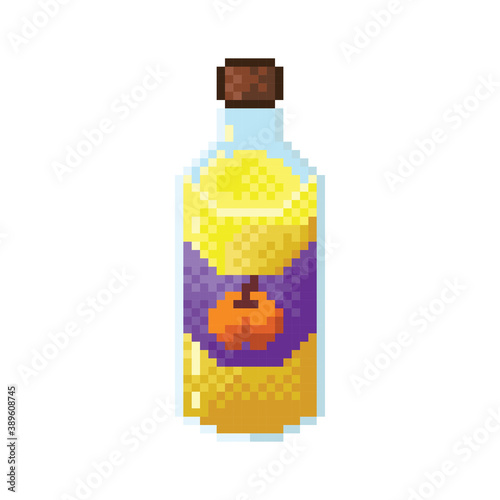 © Sudakarn, Obraz premium Pumpkin oil pixel art. Vegetable oil for cooking.