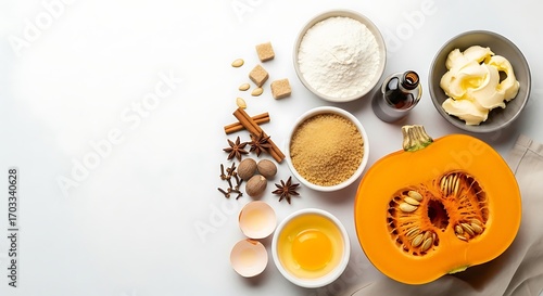 © Jamal Musallah, Fototapeta premium Pumpkin Spice Ingredients on White Background