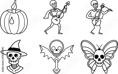 © HMDHasan, Naklejka premium Pumpkin with Witch Hat Halloween Line Art Illustration