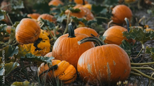 © Creative Vault, Fototapeta premium Pumpkins ripening in the garden patch.