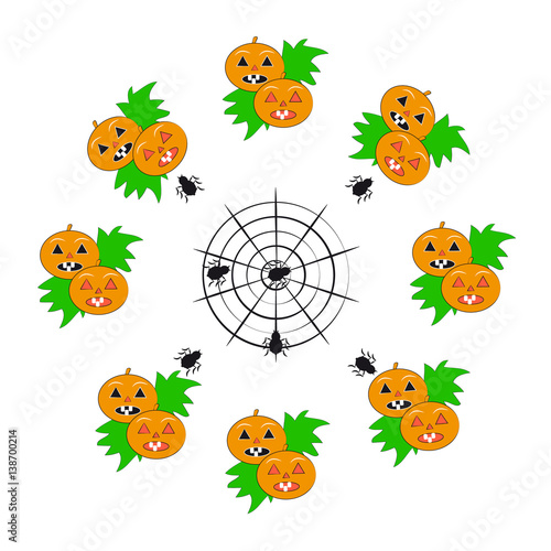 © Gatherina, Naklejka premium Pumpkins with spiders on white background