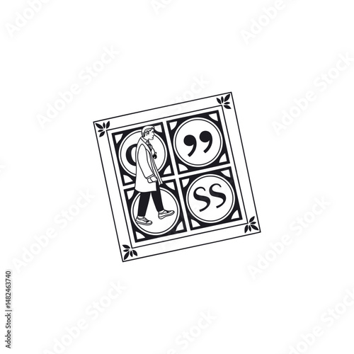 © MdAriful, Fototapeta premium Punctuation vector black and white cards on white