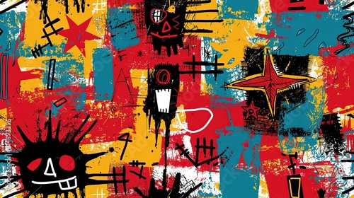 © QuietWord, Naklejka premium punk pop rock style elements abstract face with grungy texture with color splash abstract background, seamless pattern tile, Generative Ai