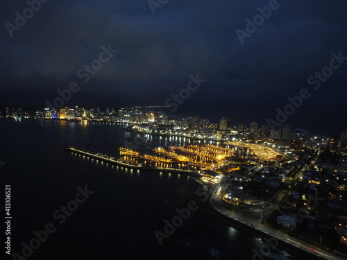 © Pedro Slinger, Obraz premium Punta del Este de noche desde drone