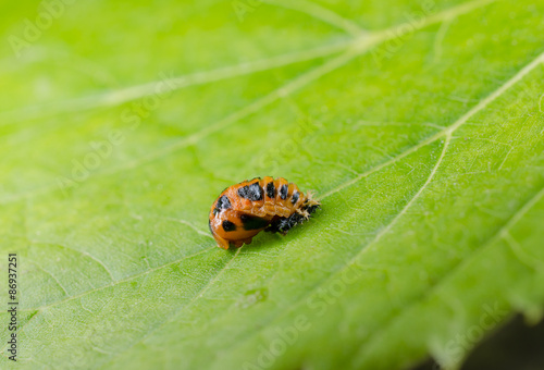© Michael Tieck, Fototapeta premium Puppe asiatischer Marienkäfer (Blatt)