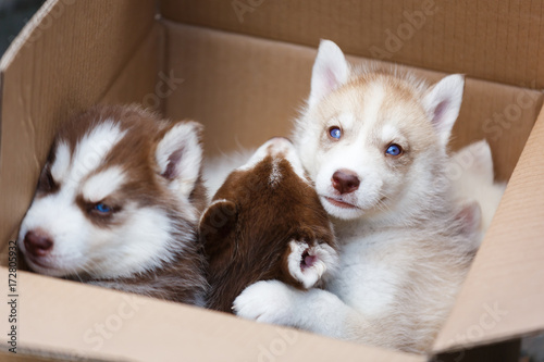 Fototapeta premium Puppies in a box