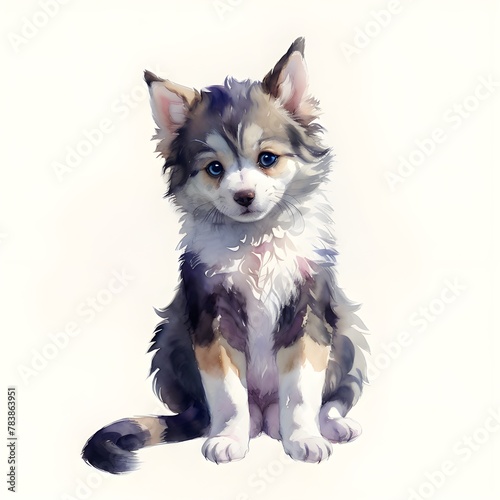 Obraz premium 두 귀를 쫑긋 멍멍이 반려견 귀여운 듬직한 댕댕이 강아지 puppy 개냥이 흰배경 수채화느낌