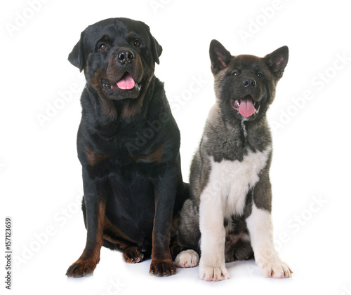 Obraz premium puppy american akita and rottweiler