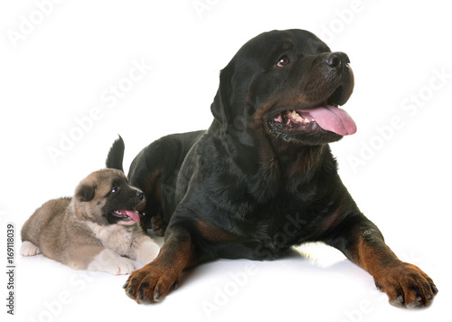 Obraz premium puppy american akita and rottweiler