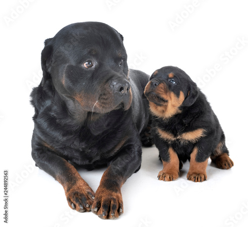 © cynoclub, Obraz premium puppy and adult rottweiler
